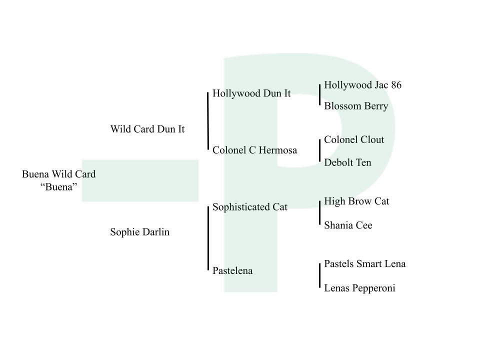 SOPHIE DARLIN (2010) AQHA sorrel mare, by SOPHISTICATED CATT (2002) AQHA sorrel stallion; $192,507 in earnings; 3 time AQHA World Champion, Sr. Cutting, Sire of earners of $2,390,649, Sire of earners of 1994 AQHA points. By HIGH BROW CAT (1988) AQHA sorrel stallion; Equi-state #1 Leading Cutting Sire. Offspring of over $60 million in earnings including DONT LOOK TWICE ($820,224: 2011 NCHA Horse of the Year.), METALLIC CAT ($637,710: NCHA Horse of the Year; NCHA Open Futurity Champion), BOON SAN KITTY ($565,504: NCHA Co-Champion Horse of the Year; 2-time NCHA Open Classic/Challenge Champion; PCCHA Open Stakes Champion; Breeders’ Invitational Open Derby Reserve Champion).